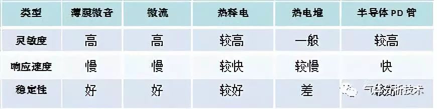 紅外氣體分析中可用的檢測(cè)器如表2所示。