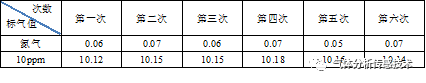 依次通入氮?dú)夂?0ppm的CO2標(biāo)氣,重復(fù)6次,得到的結(jié)果如表1所示(采用液氮?dú)饣髿怏w標(biāo)定的零點(diǎn))。