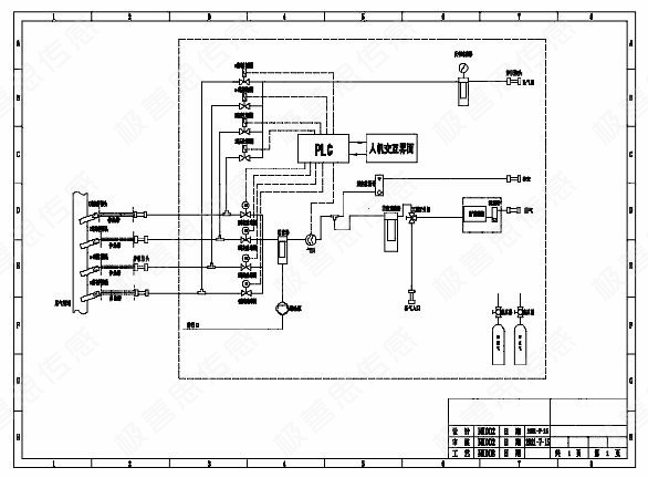 多流路系統(tǒng)采用一個分析柜,采樣預處理如圖所示,采用1拖N的方式,探頭帶過濾,分別從N個儲罐取樣。采樣探頭到機柜采用6mm取樣管線。機柜內(nèi)部管路采用伴熱帶進行伴熱,N路采樣用電磁閥進行控制,采用PLC可以實現(xiàn)輪詢采樣。