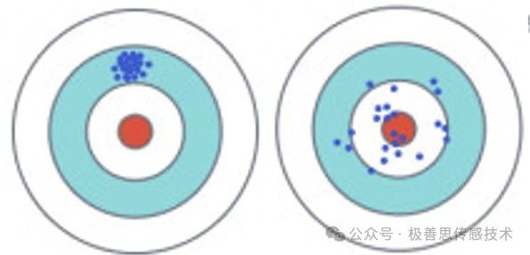 舉個例子,我們測量大氣中的氧氣,假設(shè)氧氣含量為21%,有兩臺養(yǎng)分儀,連續(xù)5次測量,儀器顯示值如圖1所示。1#最大誤差-0.5%,2號最大誤差0.3%,這兩臺表,你認(rèn)為哪一臺更好?就像圖2兩個選手打靶,你覺得哪個水平高?