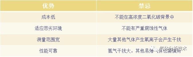 表1 氧化鋯氧傳感器優(yōu)勢(shì)與禁忌
