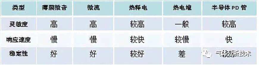 表2 紅外氣體分析中可用的檢測(cè)器
