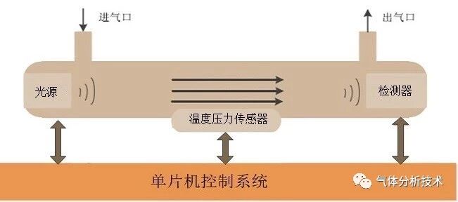 紅外光源、紅外光檢測(cè)器、氣室、溫度壓力傳感器以及單片機(jī)控制系統(tǒng)。紅外光源發(fā)出紅外光,經(jīng)過氣室中的被測(cè)氣體被吸收后的光到達(dá)檢測(cè)器。由于光源發(fā)出的是寬譜光,待測(cè)氣體可能有多種氣體能吸收不同波長(zhǎng)的光,因此要求檢測(cè)必須只能檢測(cè)待測(cè)氣體所在波長(zhǎng)的光能,這樣通過光能比較就可進(jìn)行氣體檢測(cè)。