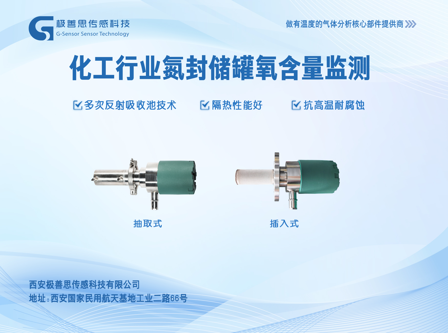 如圖所示,在氮封罐的根部法蘭上安裝一個(gè)根部閥,然后將激光氧氣分析儀直接插入儲(chǔ)罐安裝。該方式將鏡面有自限溫保溫功能,鏡面自恒溫在60℃左右,防止在鏡面上凝露。如有儲(chǔ)罐有負(fù)壓狀態(tài),可獨(dú)立選裝壓力傳感器,或者用戶測(cè)量的壓力信號(hào),以 4~20mA的形式輸入分析儀,進(jìn)行壓力補(bǔ)償。